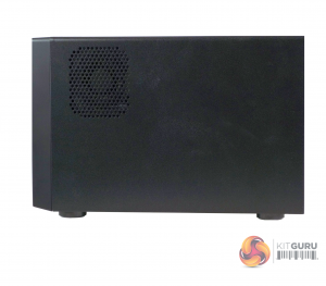 Dominating the rear panel of the TVS-872N are the pair of grills for the two 120mm system cooling fans. Above the fans to the left-hand side of the panel is the external access for the PCIe slots, also situated here is the reset button.