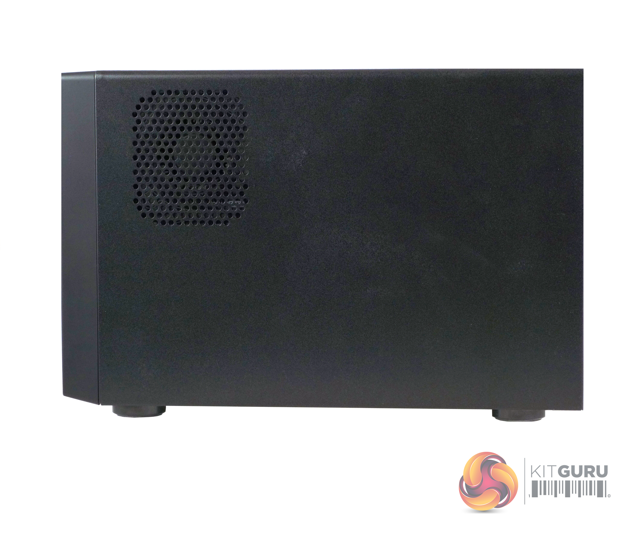 To the left of the fans are the ports. First up is an HDMI 2.0 port, under which sits the 5GbE port. Then comes a group of six ports; the two Gigabit Ethernet ports, a pair of USB 3.1 Gen 2 Type-C ports, a USB 3.1 Gen 2 Type-A port and a USB 3.0 Type-A port. Towards the bottom of the panel are the line-in and microphone ports.