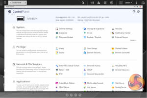 Clicking on the Control Panel icon on the main menu screen brings the complete control panel window with all the various functions of the NAS neatly divided up in sections.