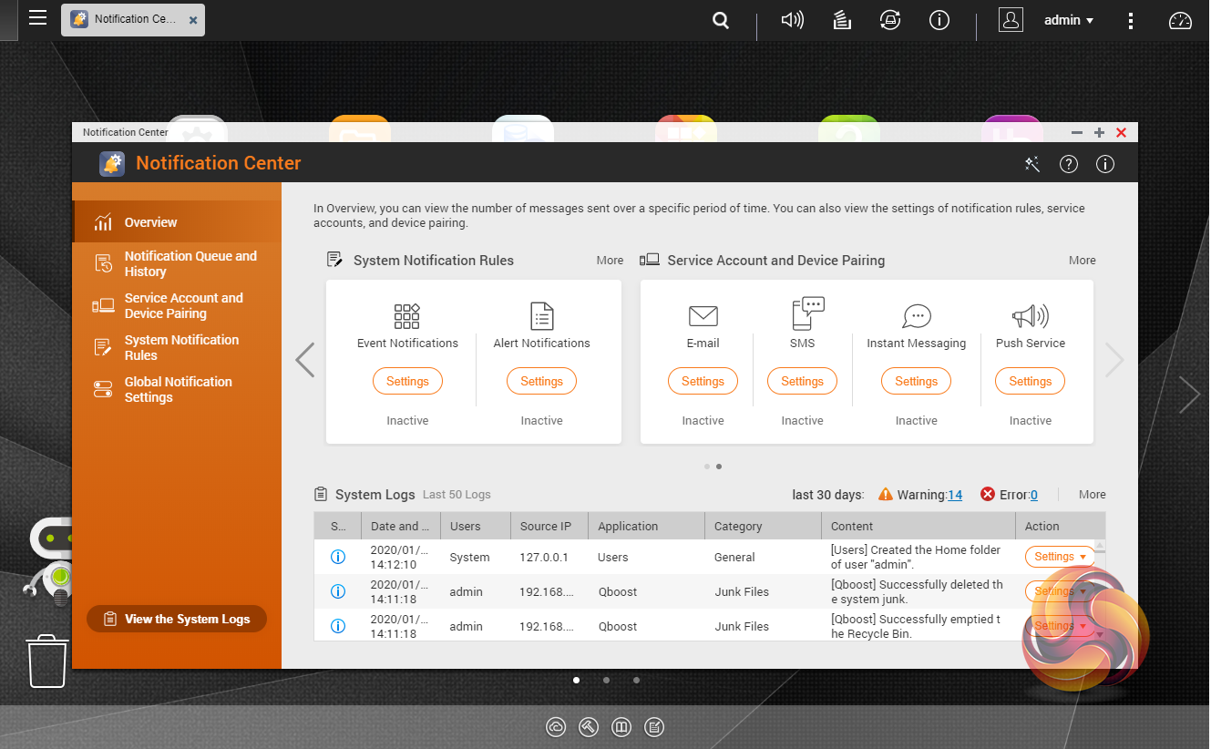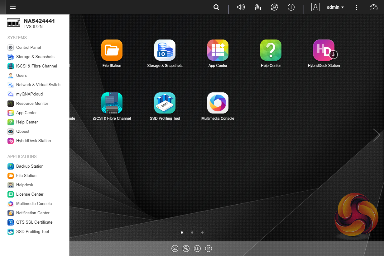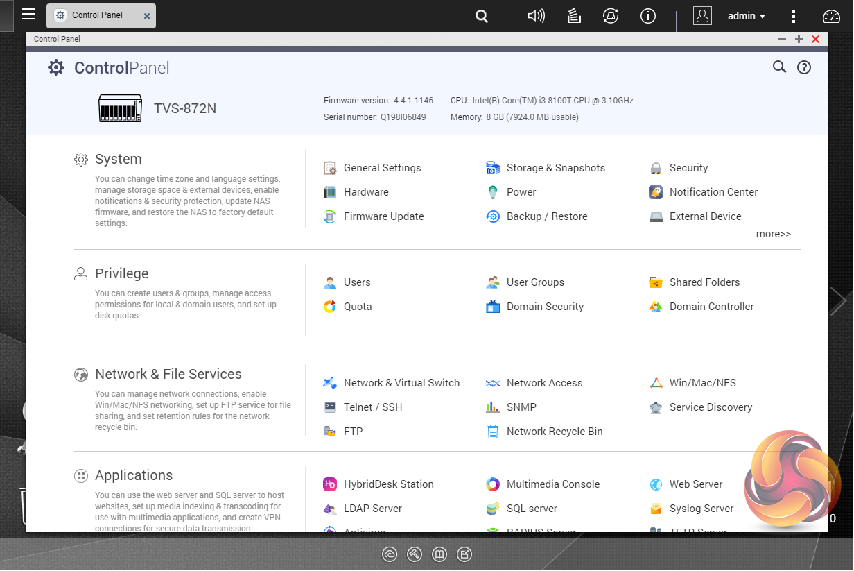 To test the TVS-872N we used the latest (at the time of testing) 4.4.1.1216 version of QNAP’s QTS OS. QNAP’s QTS is a graphically-rich OS with links to the major functions appearing as icons on the main page.