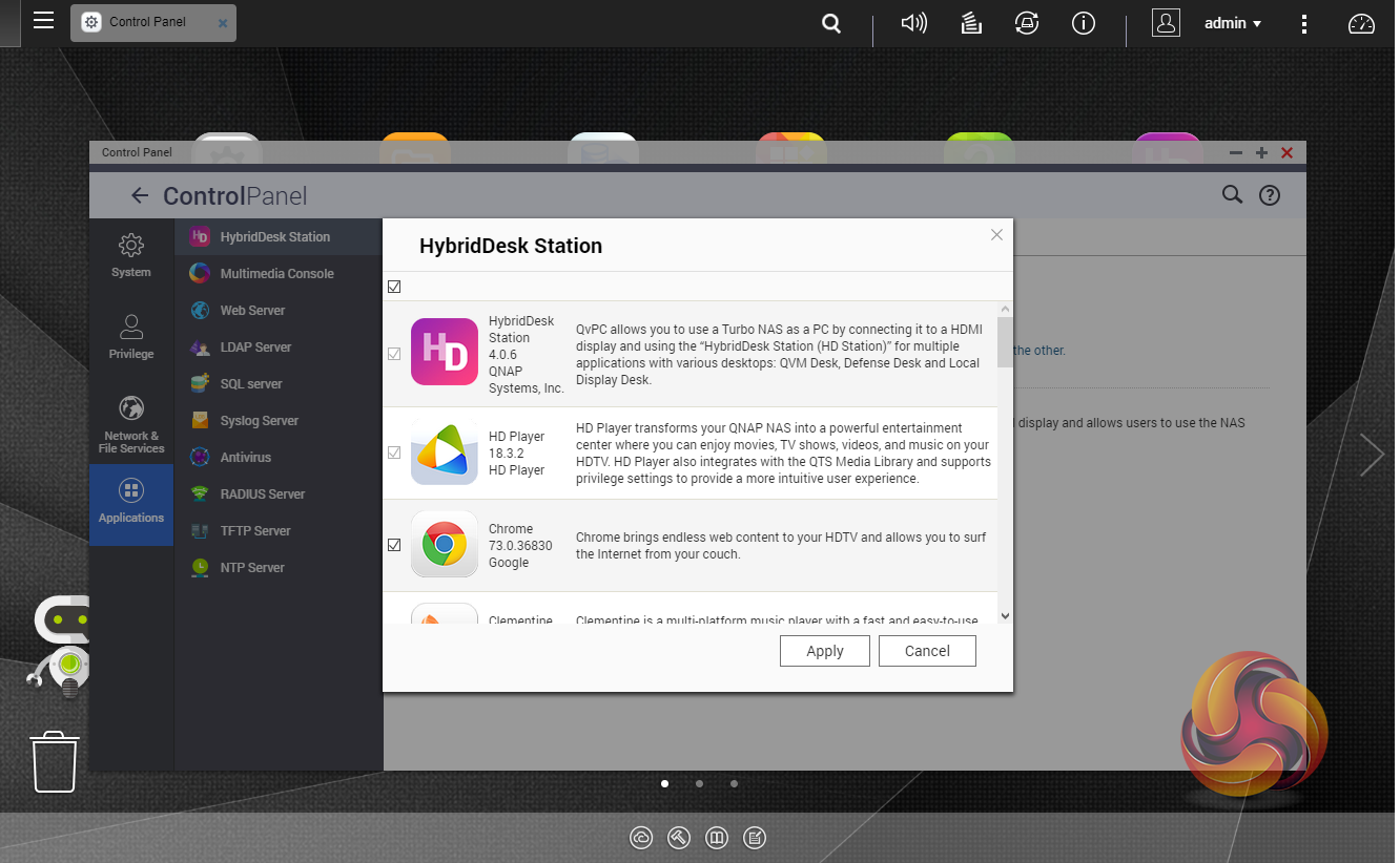 HybridDesk Station is a platform that connects a NAS to an HDMI-compatible TV or monitor enabling direct access to multimedia content and other applications. By installing HD Station and then connecting a USB keyboard and mouse together with an HDMI equipped display, the TS-251B can be used as a 4K output HTPC with the bonus of not needing a PC to use it.