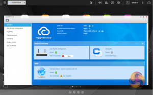 Clicking the icon in the top right of the main screen activates the Dashboard page which gives a snapshot of what’s happening with the NAS. Clicking on the ‘hamburger’ menu icon in the top left-hand corner of the screen drops down a very useful side menu with the most commonly used control panel items. Any of these can be dragged and dropped onto the main page for easy access.