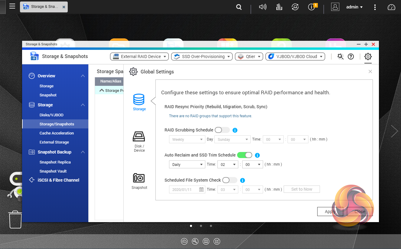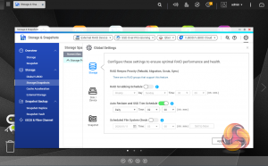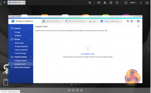 Snapshots used to be the preserve of high-end business and enterprise systems but QNAP has brought it to this NAS as well. Using snapshots you can record the state of the system and data at any time using Storage & Snapshots Manager. It displays the status of all volumes and storage pools at a glance in a very clear, well laid out manner. Global settings for disks, storage and snapshots can all be adjusted from within the management window.