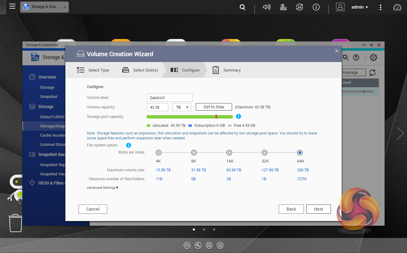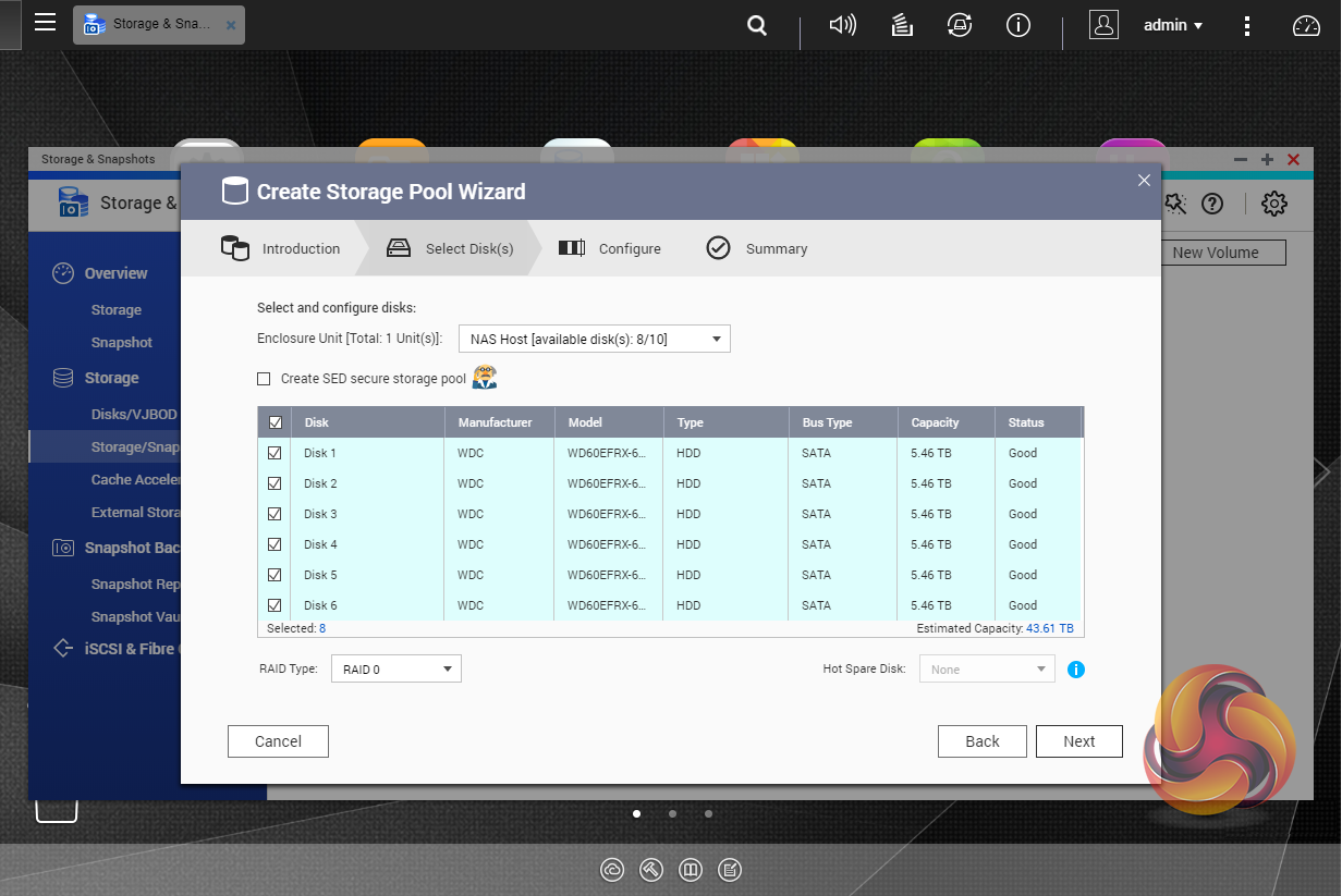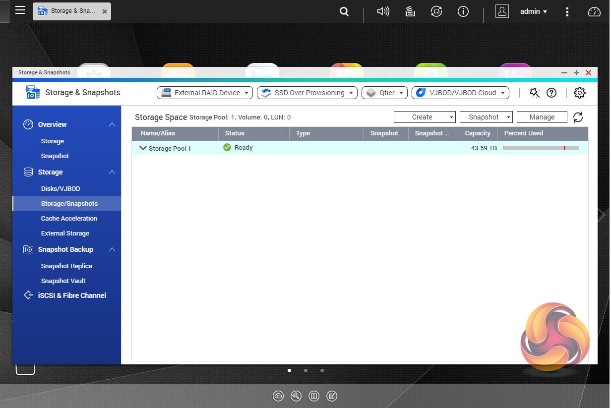 As with any NAS, disk management, RAID and volume creation are at the heart of things. Setting up storage pools and volumes up are pretty straightforward thanks to the clear and precise step by step setup pages in the QTS Storage & Snapshots Manager.