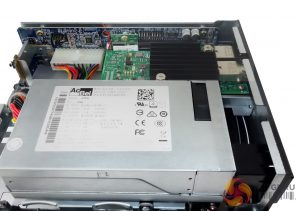 The XN50004T comes with a single Gen3 x8 PCIe slot, which was occupied in our review system by a 10GbE network card. To get to the slot you have to remove the top half of the enclosure which is a simple matter of undoing four screws and sliding the cover off and then remove the power supply, which is another three screws.