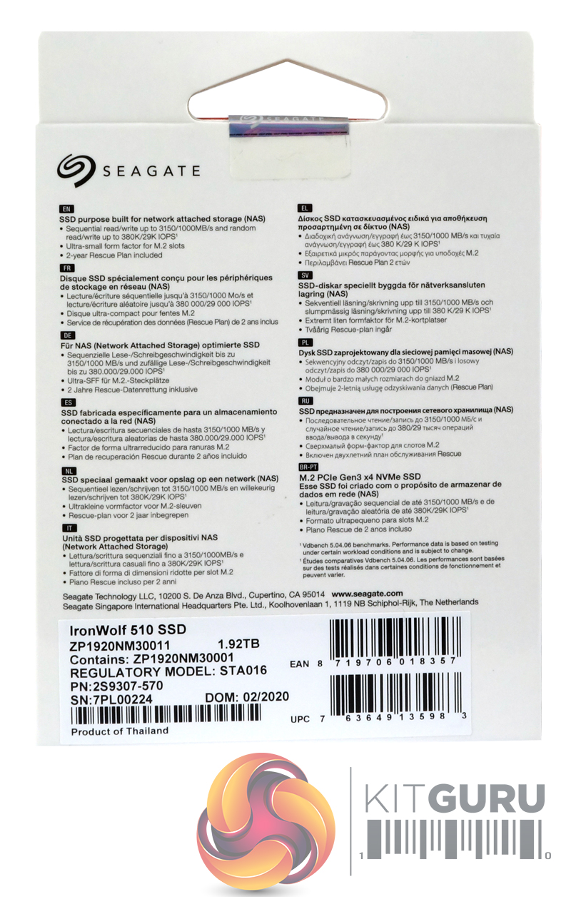 The rear of the box is covered my multilingual bullet points about the drive being purpose-built for NAS, Sequential read/write and random read/write speeds and the fact it comes with a 2-year Rescue Plan included.