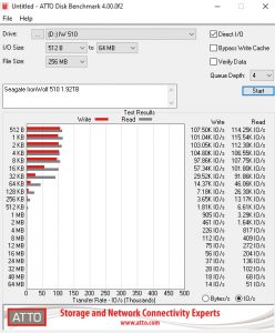 The ATTO Disk Benchmark performance measurement tool is compatible with Microsoft Windows. Measure your storage systems performance with various transfer sizes and test lengths for reads and writes. Several options are available to customize your performance measurement including queue depth, overlapped I/O and even a comparison mode with the option to run continuously. Use ATTO Disk Benchmark to test any manufacturers RAID controllers, storage controllers, host adapters, hard drives and SSD drives and notice that ATTO products will consistently provide the highest level of performance to your storage.
