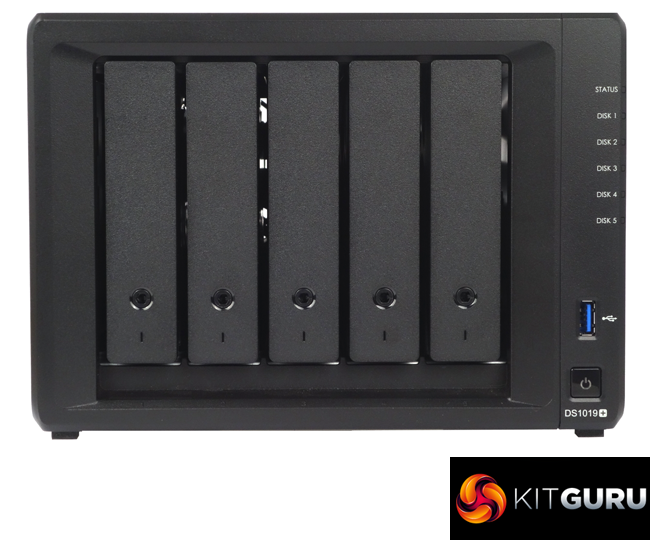 DiskStation DS1019+ is a 5-bay NAS that sits under Synology's Personal & Home User and SMB banners, due to its positioning as a scalable NAS for small offices and IT enthusiasts. Powered by a quad-core Intel processor backed by 8GB of memory, it also packs a pair of NVMe supporting M.2 ports.