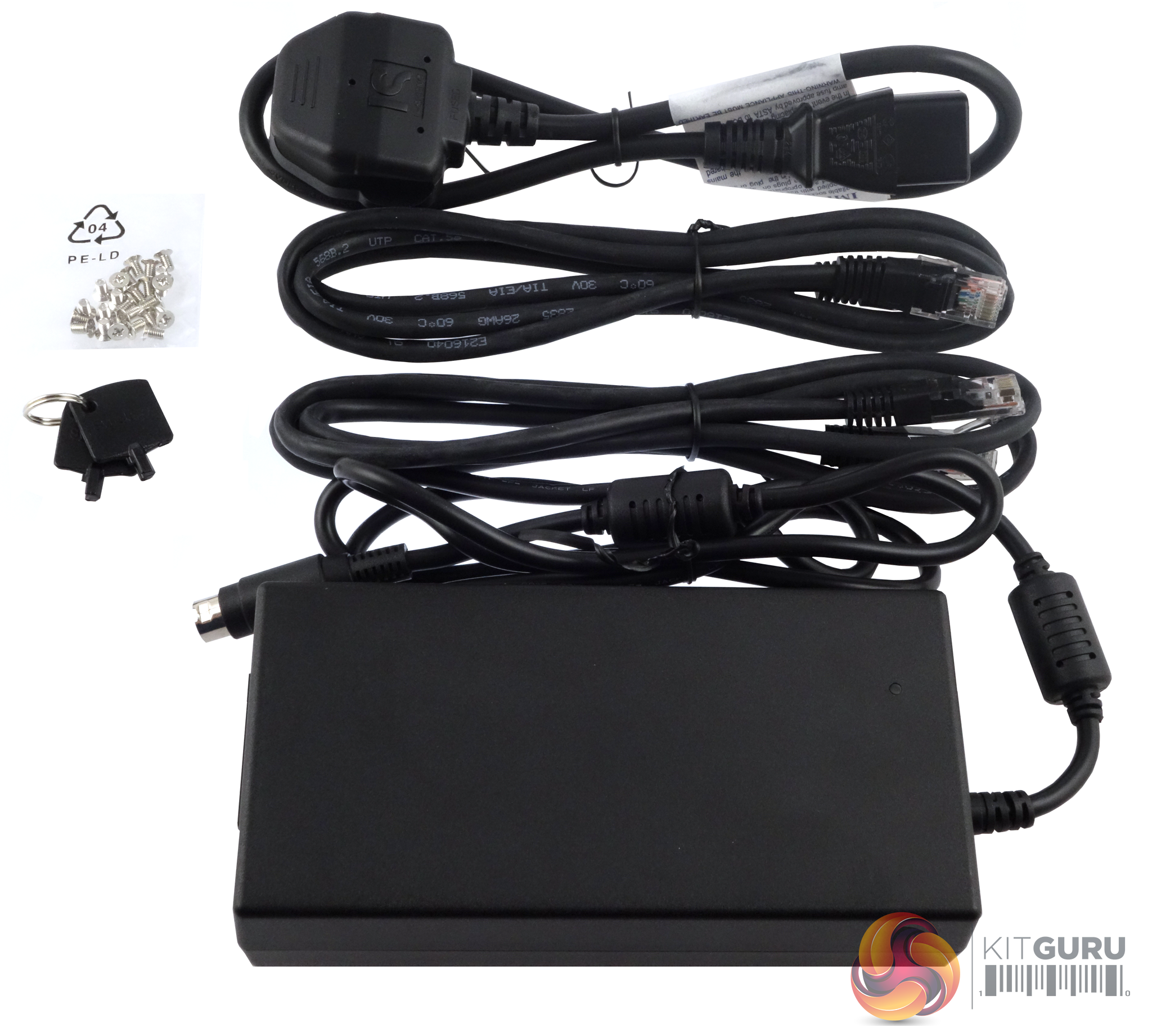 The box bundle contains everything you need to get started; Delta DPS-120AB-4 power adapter (rated at 120W), a pair of Ethernet cables, fixing screws for 2.5in drives and two drive bay keys
