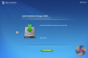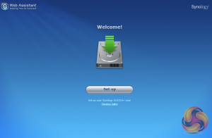 As with all Synology NAS units, the first part of setting up the involves going to http://find.synology.com which launches Web Assistant. This app searches for all DiskStations on the network so you can begin the install. If this method fails to find the NAS, the App has a link to the Synology Download Center where you can download Synology Assistant to your PC to search again for the NAS.