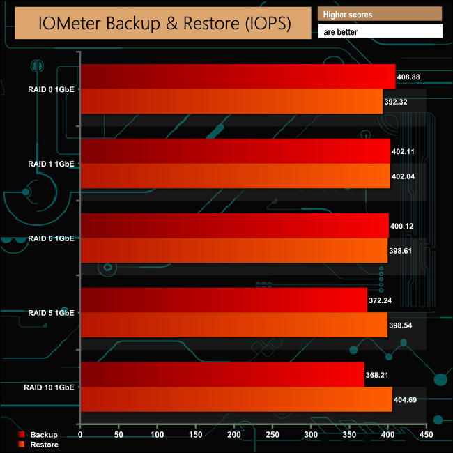 We set IOmeter up (as shown above) to test both backup and restore performance on a 100GB partition.