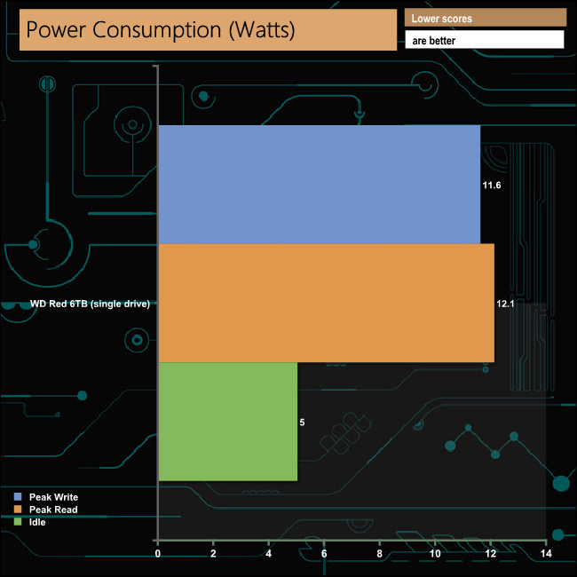 We tested the peak power consumption of a NAS at the wall during a run of CrystalDiskMark 5.0.2 as this version of the benchmark runs the read and write benchmark suites separately so it is easier to monitor what power the device is using during each function.
