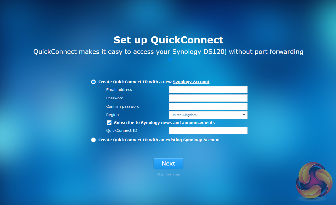 As with all Synology NAS units, the first part of setting up the DS120j involves going to http://find.synology.com which launches Web Assistant. This app searches for all DiskStations on the network so you can begin the install. If this method fails to find the NAS, the App has a link to the Synology Download Center where you can download Synology Assistant to your PC to search again for the NAS.