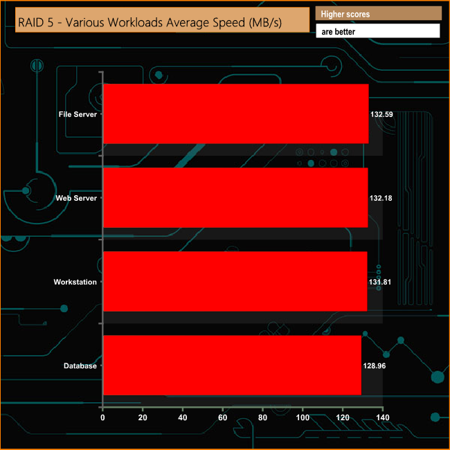 Somehow the benchmark results do not make a lot of sense to me ie looking at the throughput benchmarks most of them hover around 100 MB/sec despite the different RAID set-ups ie one would expect for example a noticeable difference between RAID-0 and RAID-5….