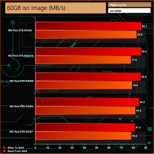 Somehow the benchmark results do not make a lot of sense to me ie looking at the throughput benchmarks most of them hover around 100 MB/sec despite the different RAID set-ups ie one would expect for example a noticeable difference between RAID-0 and RAID-5….