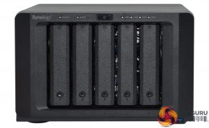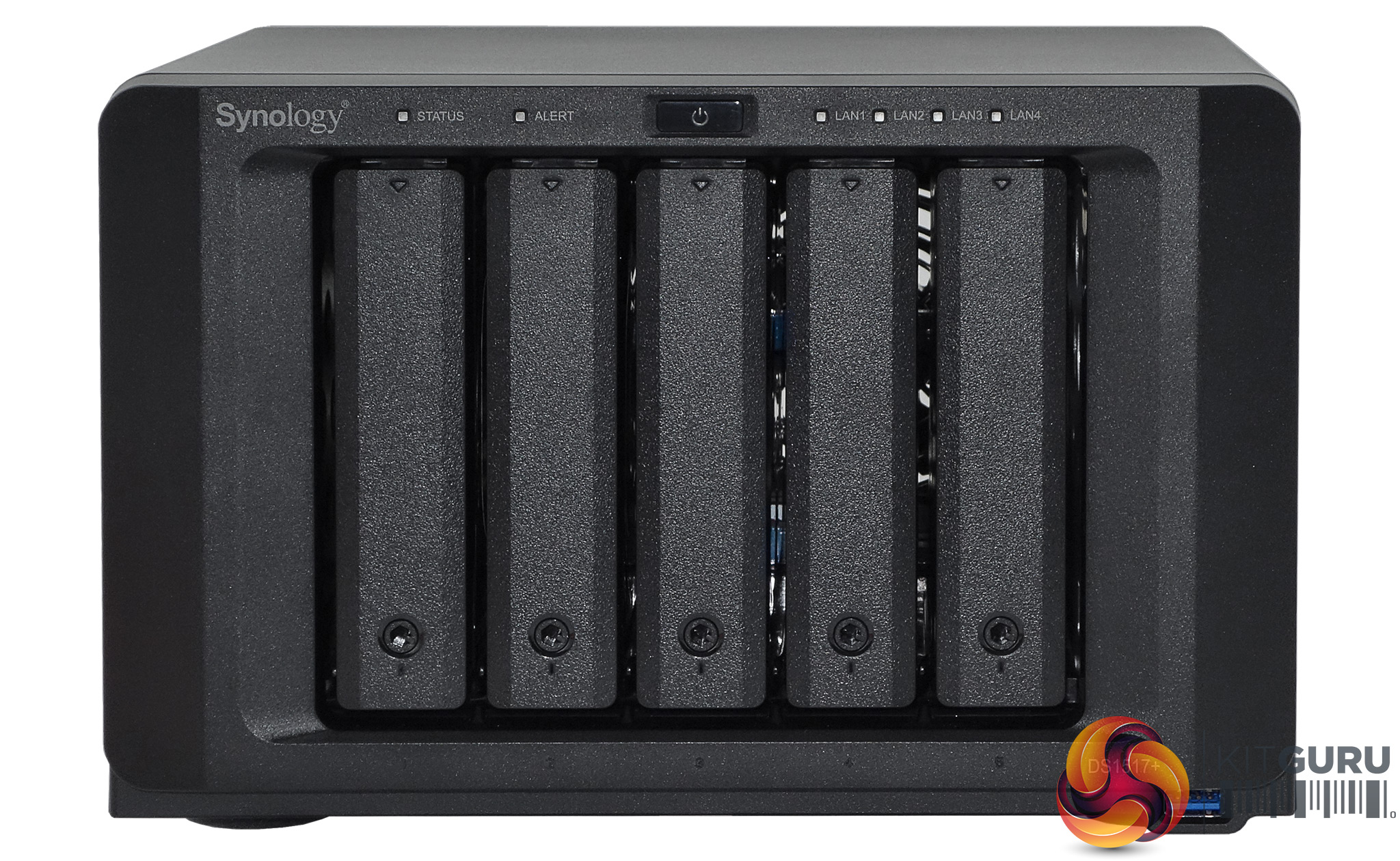 The Synology DiskStation DS1517+ is a compact designed 5-bay NAS measuring just 243 x 250 x 166 mm with an overall black finish, the cover is metal while a decent quality plastic is used for the front bezel.