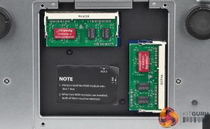 To access the PCIe slot you need to remove the cover which is held on by six screws in the rear panel. Access to the pair of SO-DIMM slots is via a removable plate (held in place with 4 screws) in the base of the unit.