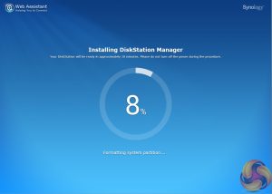 Once the NAS is found, the first window of the DSM setup wizard appears. Pressing install (there’s also a manual install option to install a downloaded instance of DSM ) automatically downloads the latest version of DSM and starts installing it after reminding you that any data on the hard disks will be deleted.
