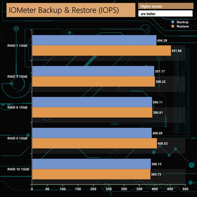 Our backup and restore tests proved no obstacle for any of the RAID arrays.