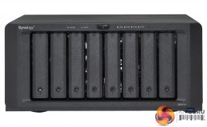 Thanks to its vertical mounted drive bays, the DiskStation DS1817+ is pretty compact for an 8-bay NAS measuring 243 x 343 x 166mm. The well built unit is finished in black with a metal cover and a decent quality plastic front bezel.