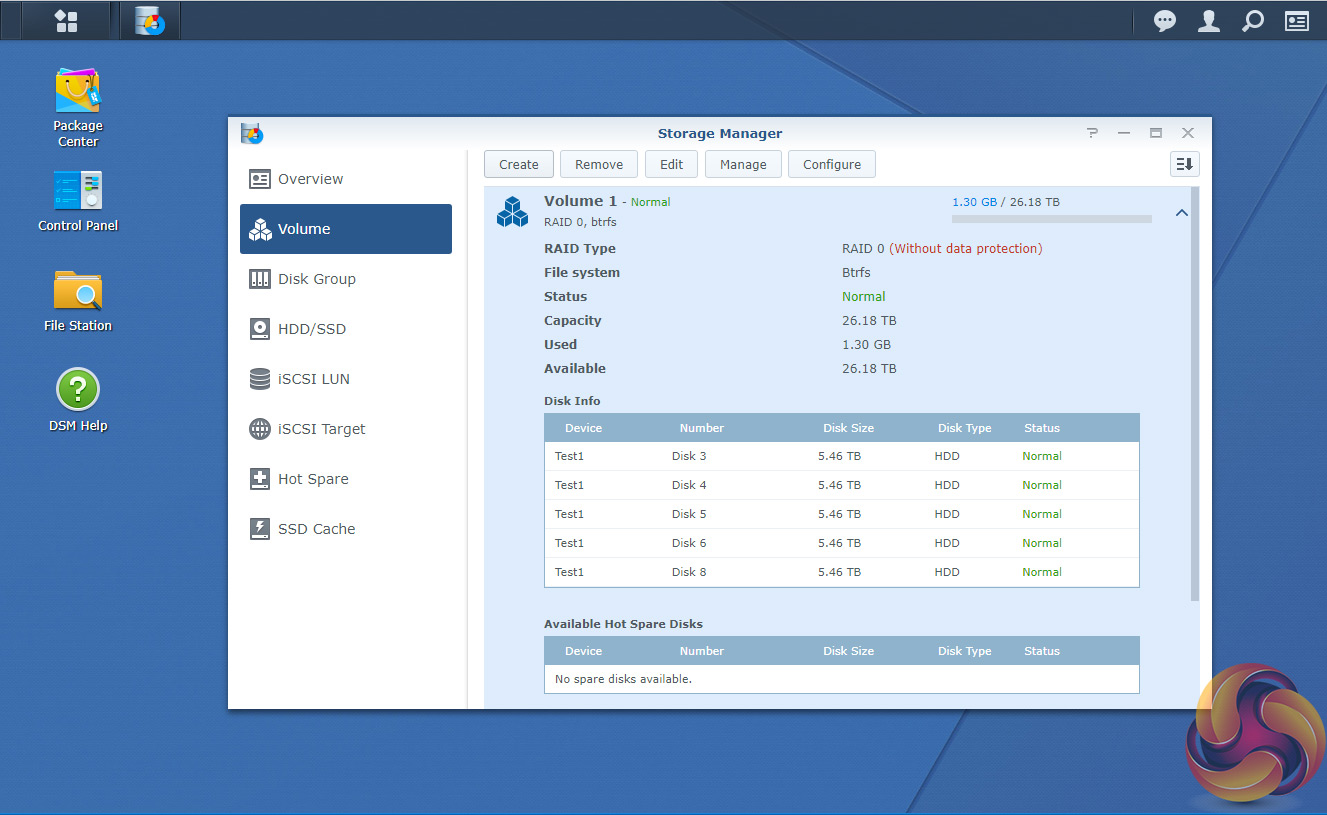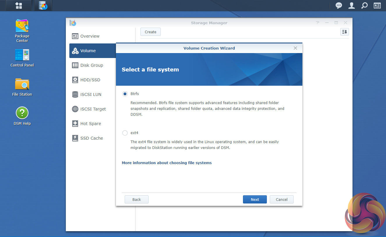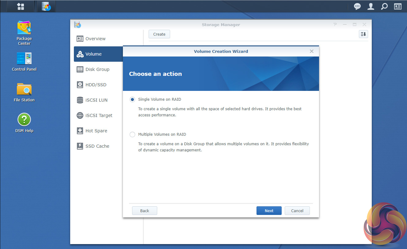 At the heart of DSM is Storage Manager. Storage Manager looks after RAID setups, volume creation (choose between the default Btrfs or ext4) and all other disk management duties.