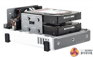 With no drive doors, to access the drive bay you have to separate the two halves of the housing. This is a simple job, made even simpler the first time around as the screws that hold the two halves together are not in place (they are in a bag in the box bundle) but to be honest the enclosure is a really good fit so you could get away with not using them even when the drives are in place. At least they are included for peace of mind if nothing else.