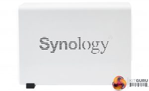 To aid in the units cooling, both side panels of the enclosure have cut out Synology branding.