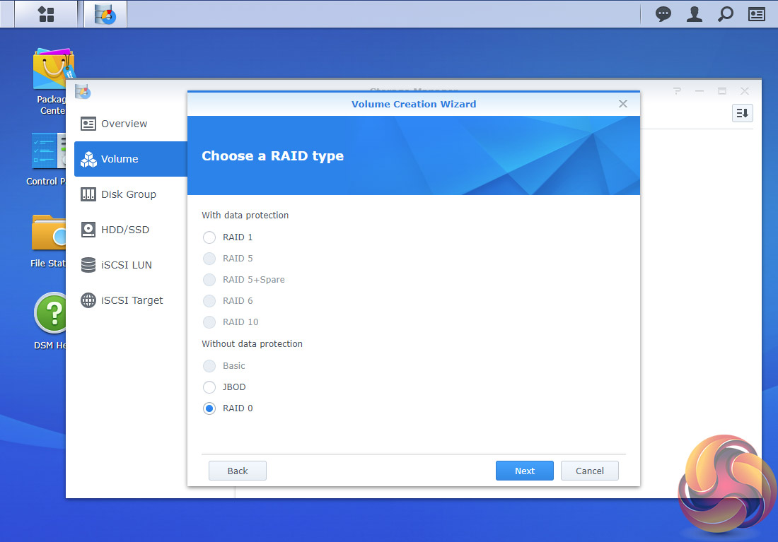 At the heart of DSM is Storage Manager. Storage Manager looks after RAID setups, volume creation and all other disk management duties.