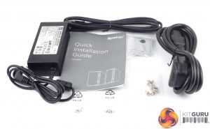 The box bundle for the DS218play is a simple affair; a 60W power adapter (CWT KPL-060F-VI), screws for securing both halves of the enclosure and for fixing the drives into position, a good quality Ethernet cable and a quick installation guide. There is also an additional bracket to support the hard drives if you are concerned about the rear end of the drives being unsupported.
