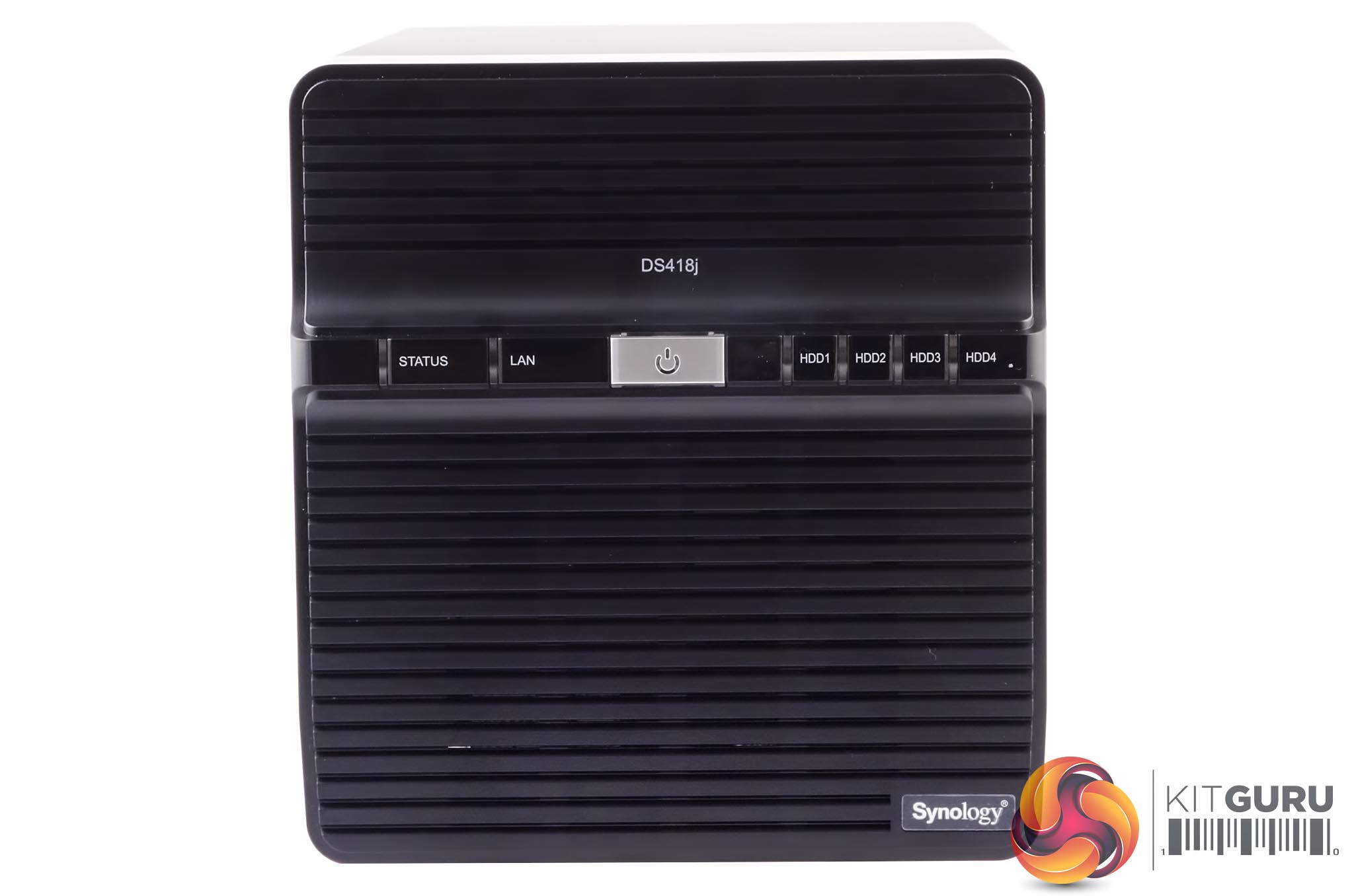 The front bezel of the DS418j is void of any drive bay doors with the whole bezel being of a slatted design which helps in keeping the unit cool. The power button sits in the middle of a raised bar 3/4 up the bezel.