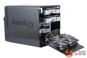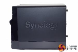 Both side panels use the cut out Synology branding to further aid in keeping the unit cool.