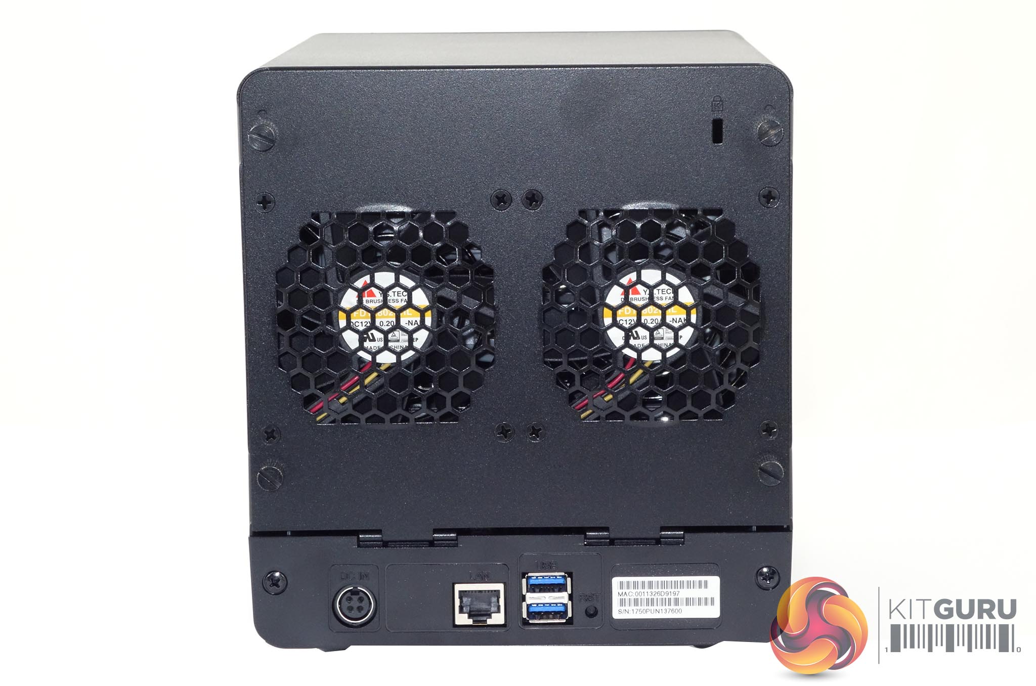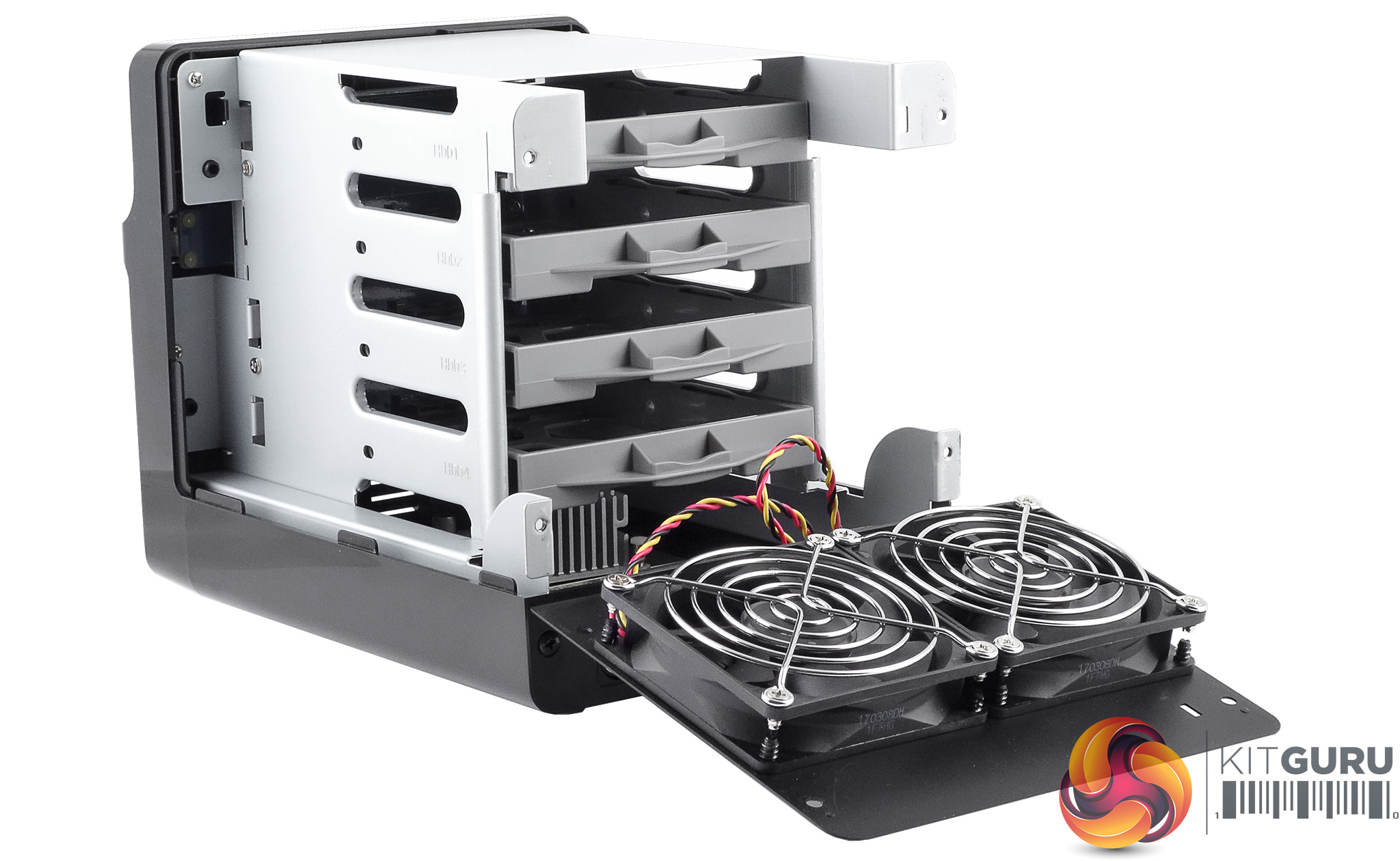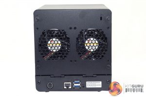 If you need more space to get at the drive trays then the whole top cover lifts off. The bottom part of the rear panel is home to the power port, two USB 3.0 ports and the single Gigabit Ethernet port.