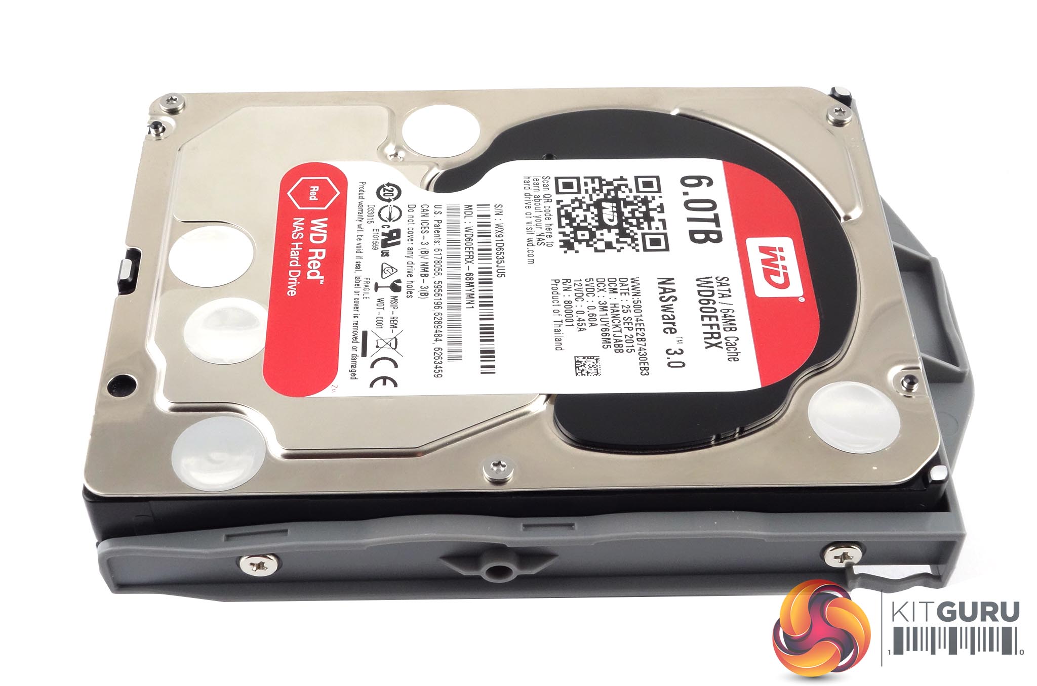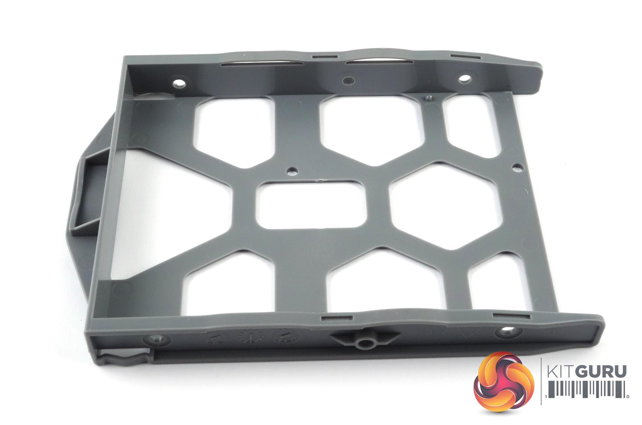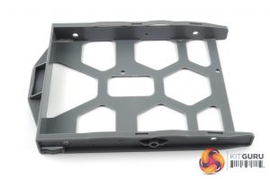 The drive trays are made of plastic and make use of the provided screws to secure drives in place. 3.5in drives use the screw holes in the side rails of the tray while 2.5in drives make use of mounting holes in the base of the tray.