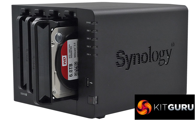 Powered by an Intel Pentium N3710 processor clocked at 1.6GHz (burst up to 2.56GHz) the DiskStation DS916+ is offered in two memory options, the entry level 2GB version or an 8GB version, which is the model Synology submitted for review. 8GB is the maximum memory supported by the single SO-DIMM slot, so if you buy the entry level unit, at least you upgrade the memory should you need to.