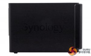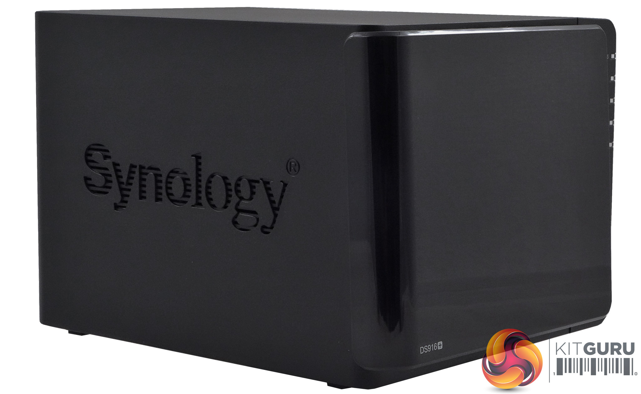 The Synology DiskStation DS916+ is a compact 4-bay tower design, with a matt black cover set off by a fingerprint attracting high gloss Piano Black front bezel – this just pulls off. A neat design touch is that the Synology branding on the cover sides is cut through, to aid in the cooling of the drives.