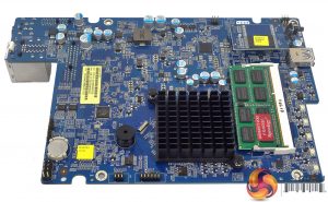Dominating one side of the compact motherboard is the passive cooler for the N3710 processor (with a TDP of just 6W, the N3710 doesn't require any active cooling) and the single SO-DIMM slot which supports memory modules up to 8GB in size.
