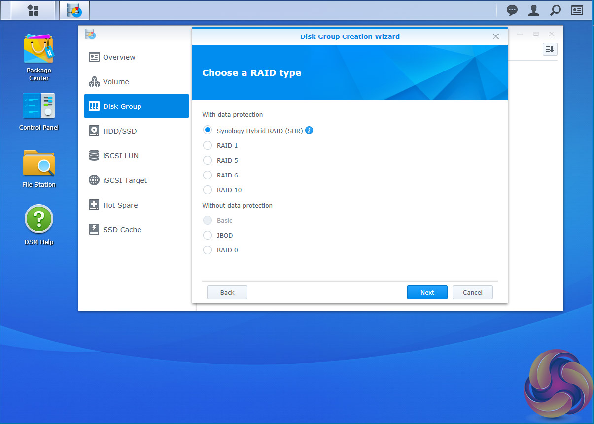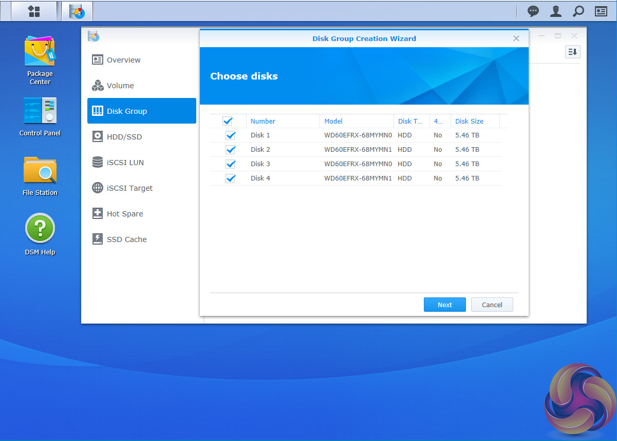 Storage Manager looks after RAID setups, volume creation (choose between Btrfs or ex4) and all other disk management duties.