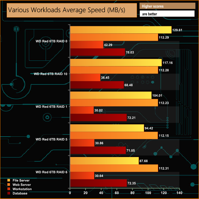 We also tested the DS918+ in a few scenarios it might be used for in an office environment. It produced average bandwidth speeds of 106.57MB/s and 112.25MB/s for the File Server and Web Server tests respectively, 34.45MB/s for the Workstation test and 70.82MB/s when tested with the Database trace.