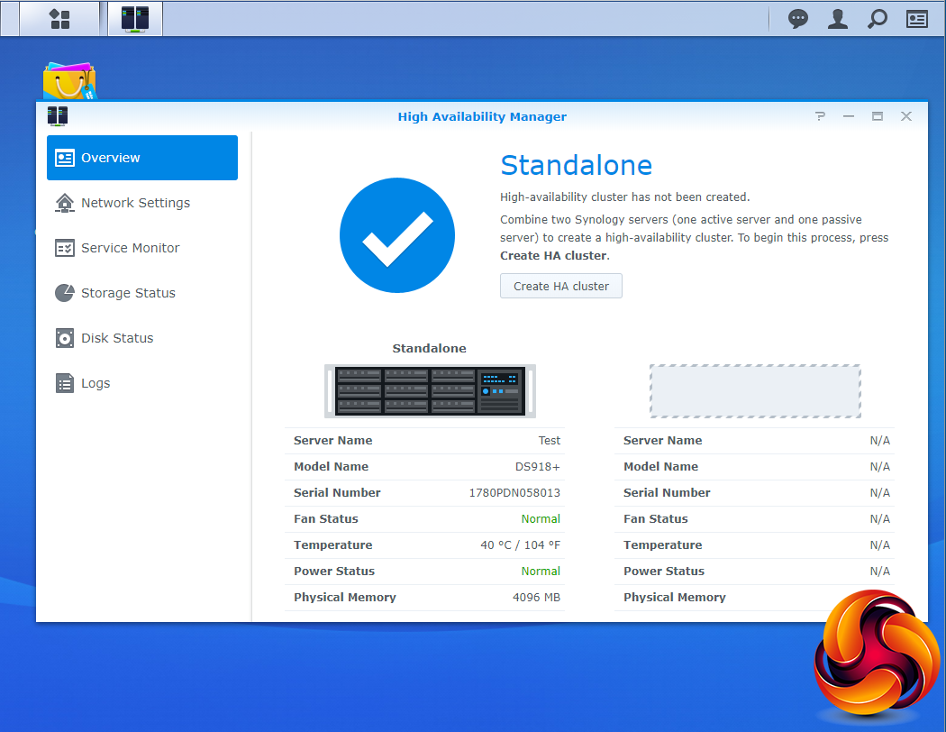 To help protect business users from potentially damaging service distruptions there is Synology High Availability. SHA allows two Synology NAS servers to be combined into a single high-availability (HA) cluster with one NAS acting as the active server while the other acts a standby passive server. All services and data requests are handled by the active unit with real time data mirroring being handled by the passive unit.