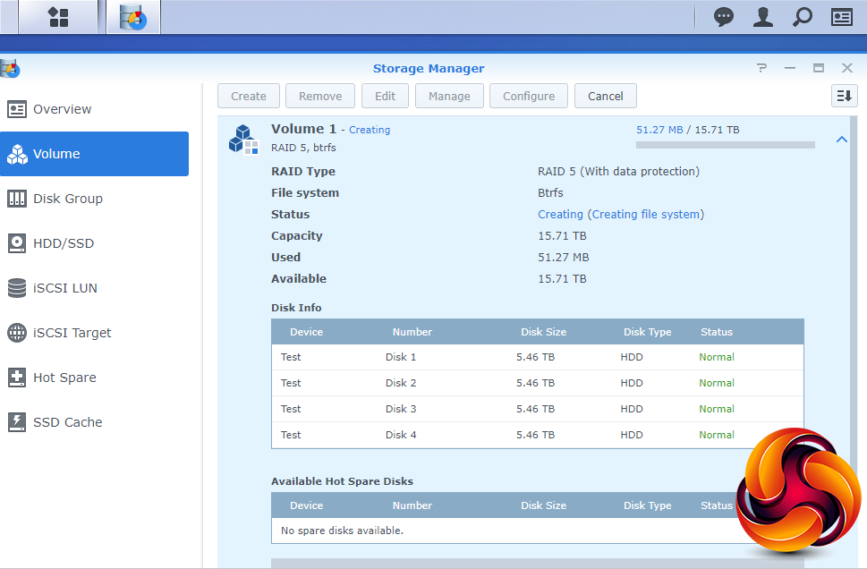 At the heart of DSM is Storage Manager. Storage Manager looks after RAID setups, volume creation and all other disk management duties.