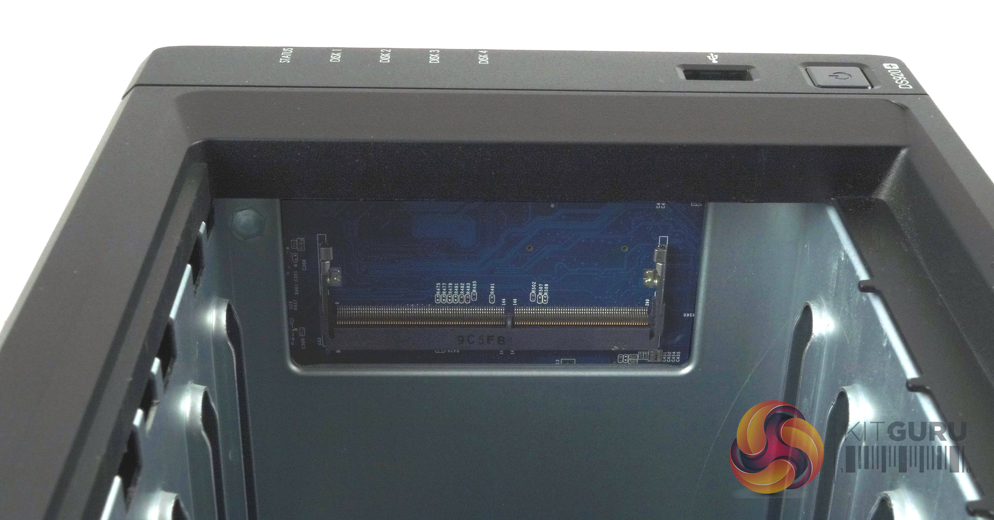 The DS920+ comes with 4GB of DDR4 installed but should you need more, the motherboard of the DS920+ supports up to 8GB memory. More memory can be added by using a single SO-DIMM slot that sits just behind the front bezel.