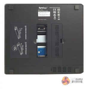 To give the DS920+ more performance when it comes to caching duties, Synology has built in a pair of NVMe supporting M.2 slots which sit behind hatches in the base of the NAS.