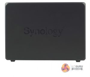 The side panels of the DS920+ have Synology branding cut into them with a mesh backing to provide extra ventilation for the NAS.