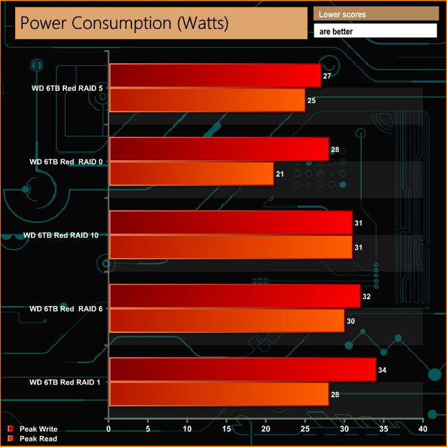 We tested the peak power consumption of a NAS at the wall during a run of CrystalDiskMark 5.0.2 as this version of the benchmark runs the read and write benchmark suites separately so its easier to monitor what power the device is using during each function.