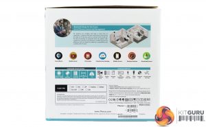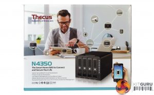 Rather than the usual brown box with the odd note or stickers as to what the NAS inside the box is capable of, Thecus has gone to town on the box so it's covered in details about the N4350's capabilities. The front of the box has an image of the unit surrounded by icons representing what the N4350 can be used for and what it can connect with.