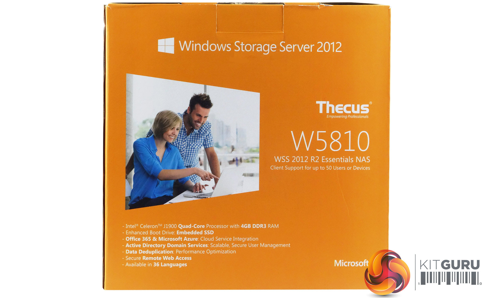 One glance at the front and back of the box that the W5810 comes in, finished in a natty shade of orange, leaves you in no doubt that this is a Window's based product. Along with the model number on the front here is a note about the number of clients supported by the Windows Storage Server 2012 R2 Essentials OS and a list of the devices features.