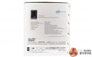 On one side of the box displays that the W5810 supports both Microsoft Azure and Office 365, data duplication, ADD (Active Directory Domain) services and has an embedded SSD. The other side of the box has an image of the front of the unit along with hardware specifications and software features.