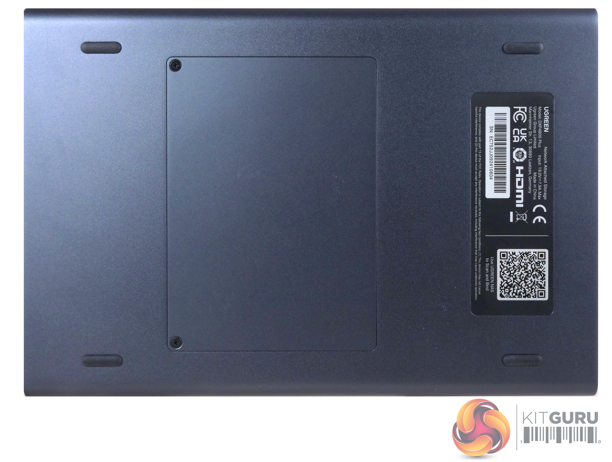 The rear panel of the unit is dominated by the cover for the 140mm cooling fan (the speed can be set in the OS). Full marks to Ugreen on the cover as it's a magnetic dust filter – other NAS manufacturers please take note. Under this sits the rear ports, and here Ugreen has made some interesting choices. First up is a 4K 60Hz capable HDMI port followed by a single 3.2 Gen 1 Type-A port and two stacked USB 2.0 ports. Then comes the big surprise as the DXP4800 Plus has not one but two Ethernet ports, one 2.5GbE, the other 10GbE. Next to these ports are the reset button and the power connector.