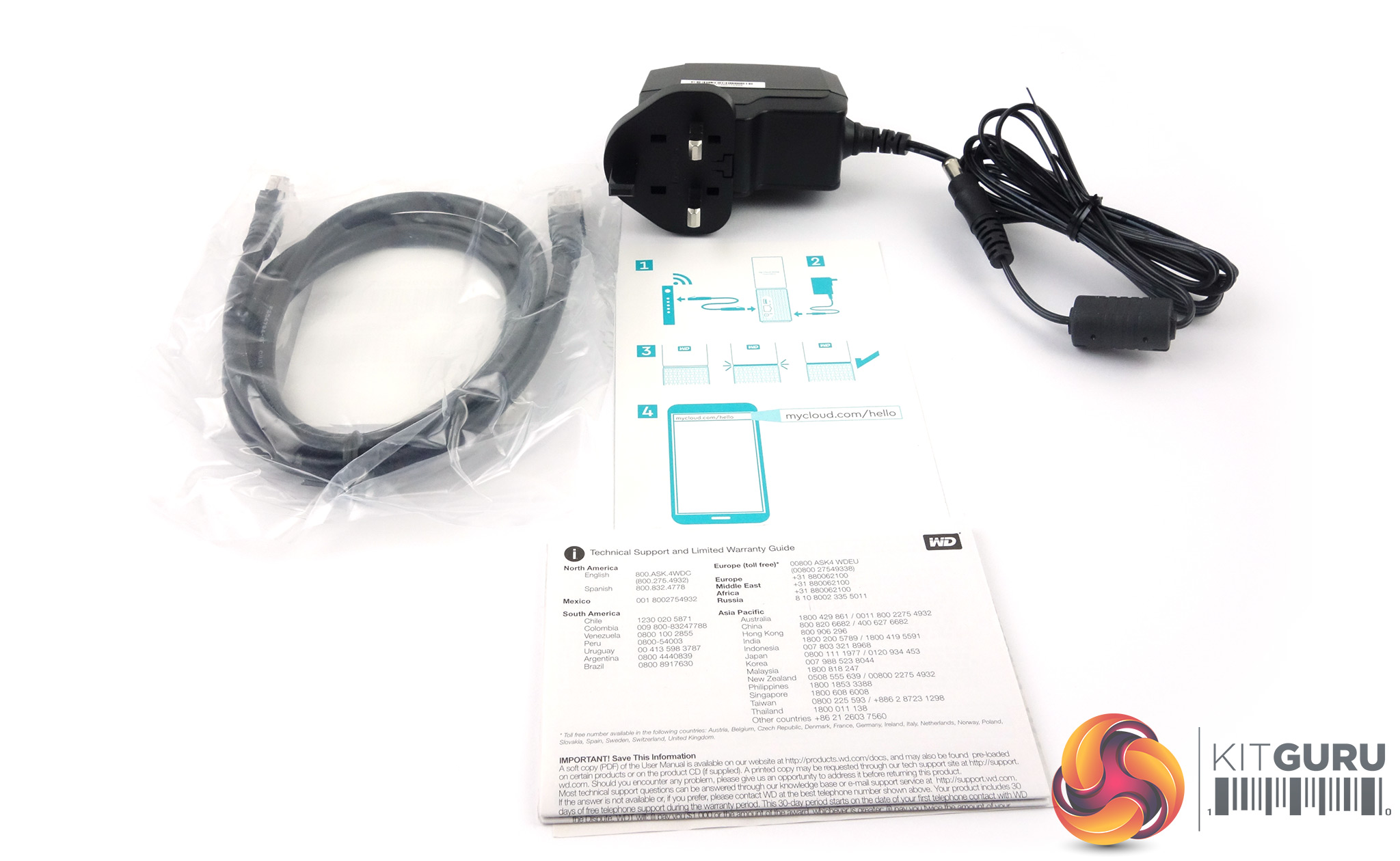 The bundle that comes with the My Cloud Home consists of a Gigabit Ethernet cable, an 18W power adapter (APD WB-18L 12R), warranty information and a setup guide card.
