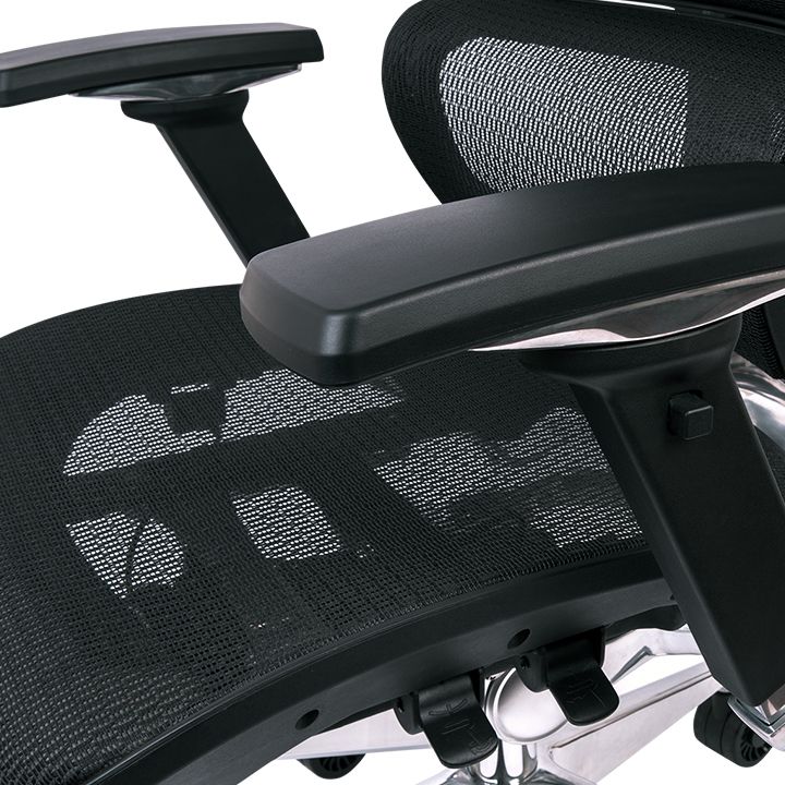 In addition to the sturdy backrest structure, the base of the CyberChair E500 is built with a five-star heavy-duty aluminium frame that measures 700mm in diameter. The base is designed to withstand loads of up to 150 kg (330 lb) and is equipped with large 3-inch wide castor wheels to offer extra stability, with quiet operation and smooth movement.